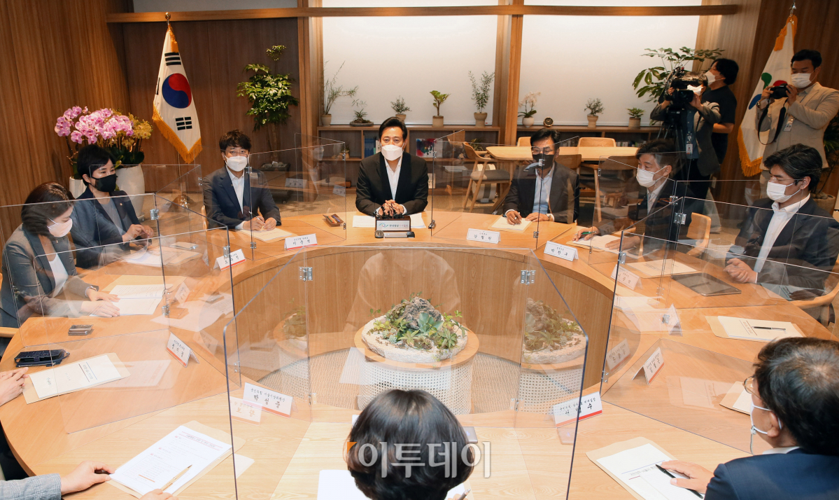 오세훈 서울시장이 22일 오전 서울특별시청에서 열린 국민의힘 이준석 대표와의 현안간담회에서 발언하고 있다. 국회사진취재단