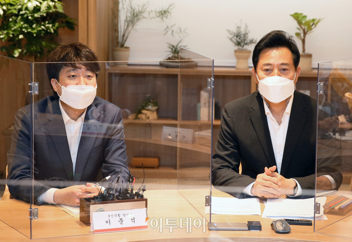 국민의힘 이준석 대표가 22일 오전 서울특별시청에서 열린 오세훈 시장과의 현안간담회에서 발언하고 있다. 국회사진취재단