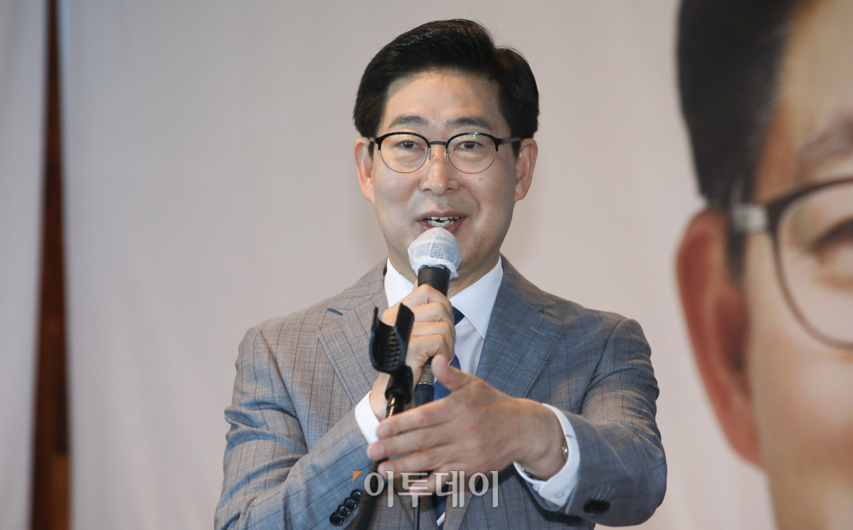 대선 출마를 선언한 양승조 충청남도 도지사가 23일 서울 여의도 마리나컨벤션센터에서 열린 출판기념회에서 인사말을 하고 있다.