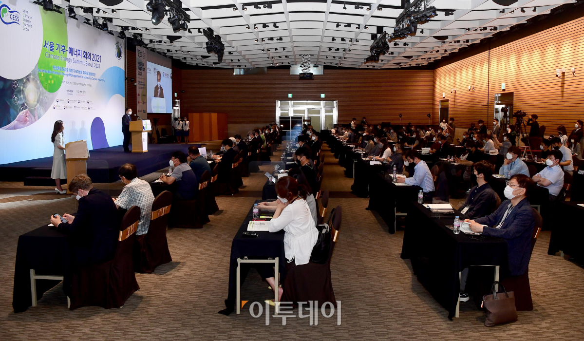 24일 서울 여의도 전경련회관 컨퍼런스센터에서 열린 ‘서울 기후-에너지 회의 2021’에서 문승욱 산업통상자원부 장관이 축사를 하고 있다. 이투데이와 기후변화센터가 주최한 서울 기후-에너지 회의 2021은 2050 탄소중립 달성을 위한 지속가능한 폐자원 활용을 통해 그린오션 비즈니스의 가치를 논의하는 자리다.