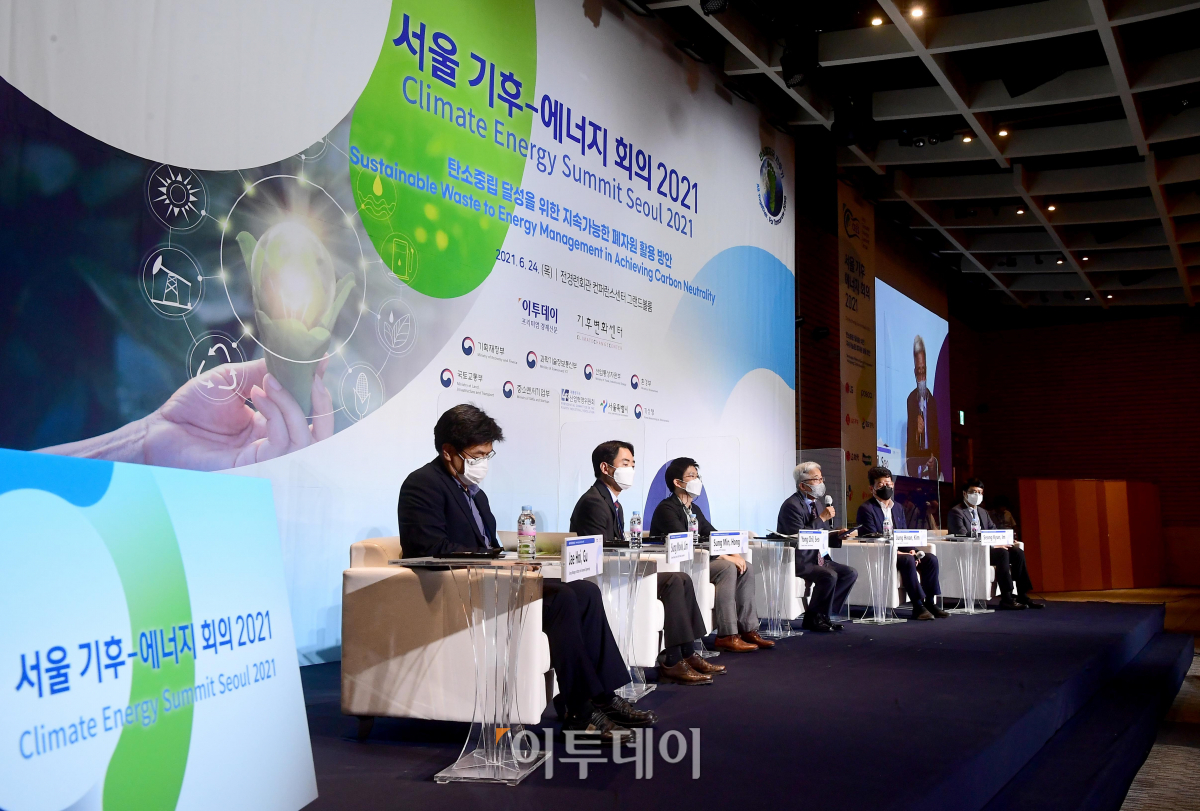 24일 서울 여의도 전경련회관 컨퍼런스센터에서 열린 ‘서울 기후-에너지 회의 2021’에서 서용칠 연세대 환경에너지공학부 명예교수가 토론에 참여하고 있다. 이투데이와 기후변화센터가 주최한 서울 기후-에너지 회의 2021은 2050 탄소중립 달성을 위한 지속가능한 폐자원 활용을 통해 그린오션 비즈니스의 가치를 논의하는 자리다.
