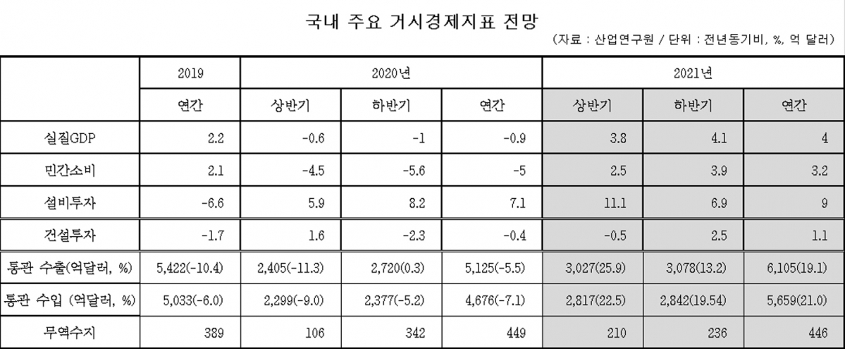 아울러 실질GDP는 4.0%, 민간소비는 3.2%, 설비투자는 9.0%, 건설투자는 1.1% 증가할 것으로 예상했다.