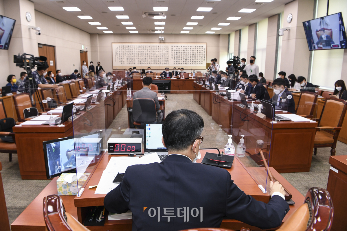 박주민 국회 법제사법위원회 위원장 직무대리가 30일 오후 서울 여의도 국회에서 법사위 전체회의 중 의사봉을 두드리고 있다.