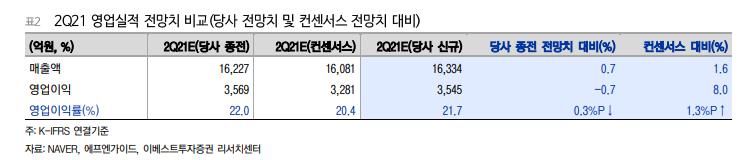 성종화 이베스트투자증권 연구원은 "2분기 연결 영업실적은 전년 동기와 비교해 매출액은 28% 늘어난 1조6334억 원, 영업이익은 15.1% 증가한 3545억 원으로 예상한다"며 "시장 전망치에 부합하거나 초과할 것"이라고 설명했다.