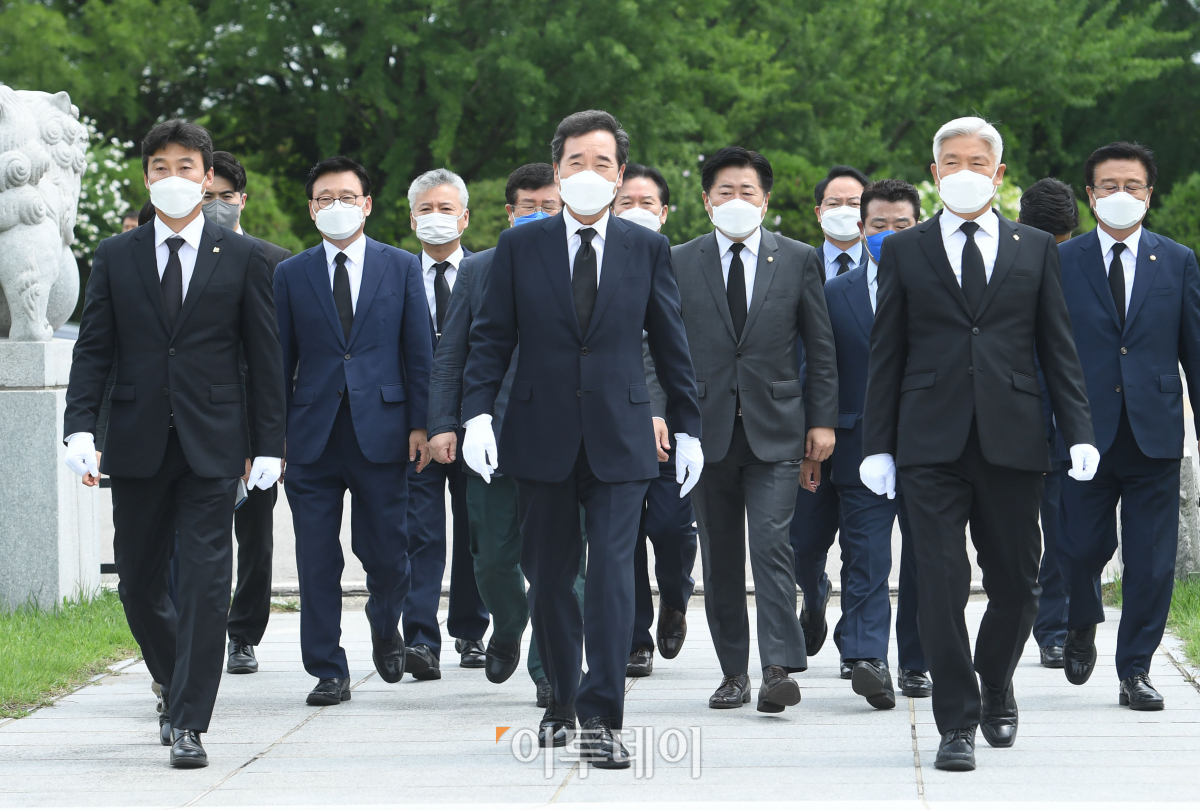 대선 출마를 공식 선언한 이낙연 더불어민주당 전 대표가 5일 오전 서울 동작구 국립서울현충원에서 학도의용군 무명용사탑을 참배하기 위해 걸어오고 있다. 이 전 대표는 이날 오전 유튜브 '이낙연TV'를 통해 공식적으로 대선 출마 선언을 했다. 국회사진취재단