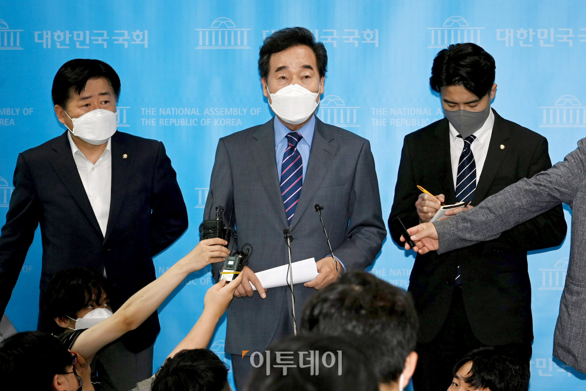 [포토] 취재진 질문 답하는 이낙연 전 대표