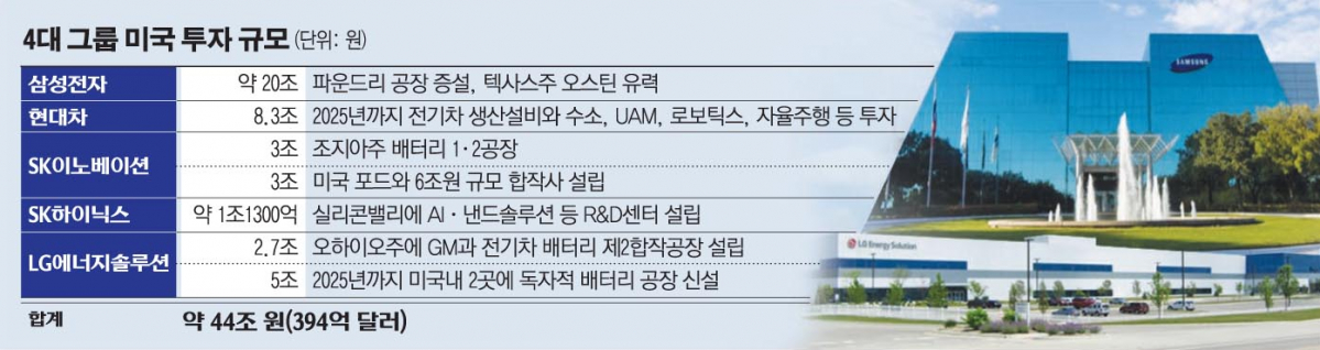 삼성, 현대자동차, SK, LG 등 4대 그룹은 이에 맞춰 총 44조 원이 넘는 미국 투자 계획을 발표하기도 했다.