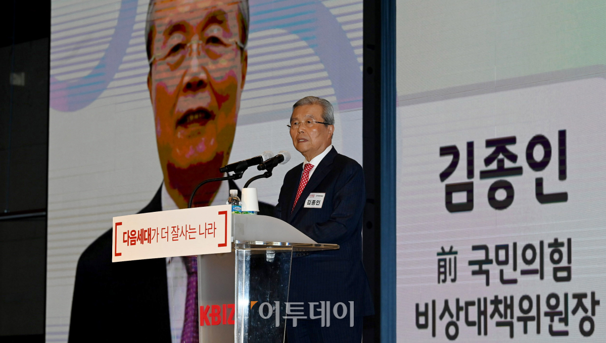 7일 오전 서울 영등포구 중소기업회관에서 열린 원회룡 제주지사 지지 현역 국회의원 모임인 '희망오름' 출범식에서 김종인 전 국민의힘 비대위원장이 축사를 하고 있다.