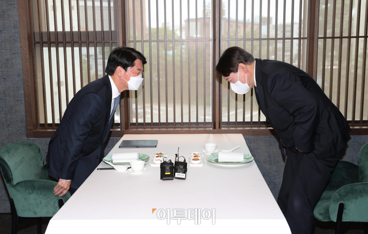 안철수 국민의당 대표와 윤석열 전 검찰총장이 7일 서울 종로구 한 중식당에서 오찬 회동을 하고 있다. 국회사진취재단