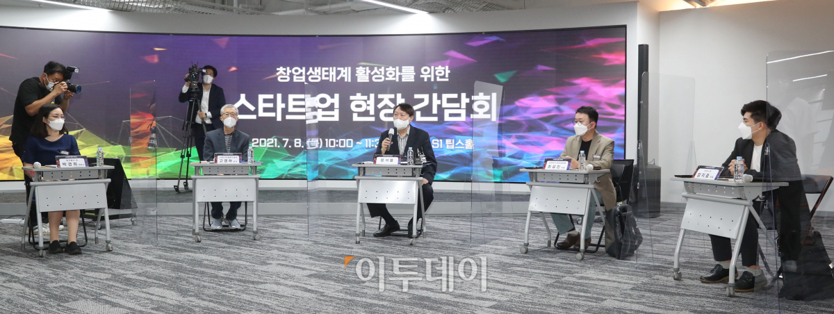 8일 역삼동 팁스타운에서 '스타트업 현장 간담회'가 열린 가운데 윤석열 전 검찰총장이 모두발언을 하고 있다. 국회사진취재단