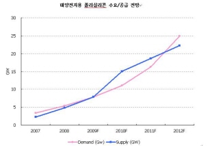 또 2010년의 태양 전지용 폴리실리콘은 약 15.0GW(약 10만8천 톤)정도가 공급 가능하지만 수요는 약 11GW정도로 공급량을 크게 밑돌 것으로 예측됐다.