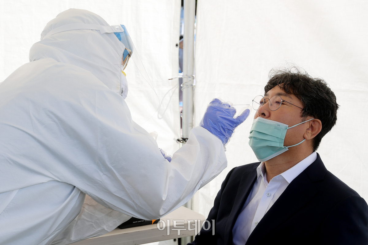 [포토] 코로나19 진단검사 받는 이춘석 국회사무총장