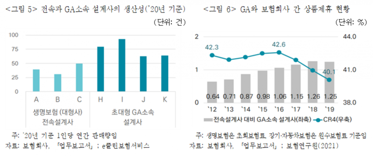 보험회사는 성장이 정체된 시장 상황에서 단기적으로 매출확대가 쉬운 GA 채널을 활용할 유인이 크고, 다양한 상품을 취급하는 GA는 수수료 체계에 따라 소비자에게 고수수료 상품 위주로 계약 체결을 권유할 유인이 존재하기 때문이다.