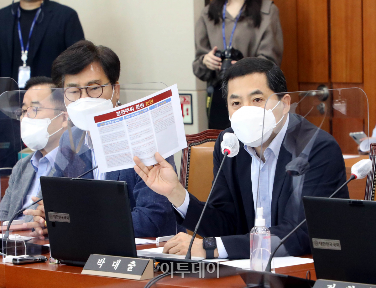27일 오전 서울 여의도 국회 과학기술정보방송통신위원회에서 국민의힘 박대출의원이 정연주 방송통신심의위원장 위촉과 관련 발언을 하고 있다.