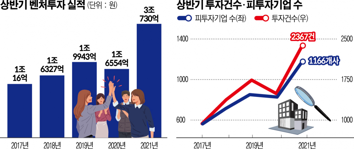 상반기 벤처투자가 3조 원을 넘어서며 역대 최대치를 기록했다. 올해 벤처투자 규모(조합 등록 기준)는 5조 원을 넘어설 것으로 전망된다.