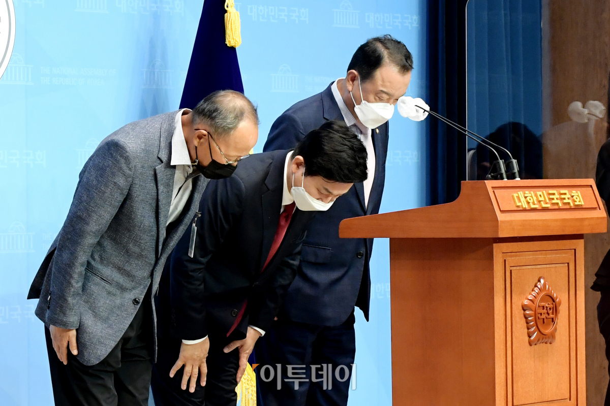원희룡 제주지사가 29일 오전 서울 여의도 국회 소통관에서 '원희룡의 국가찬스 1호 공약: 주택 국가찬스' 기자회견을 마치고 인사하고 있다.