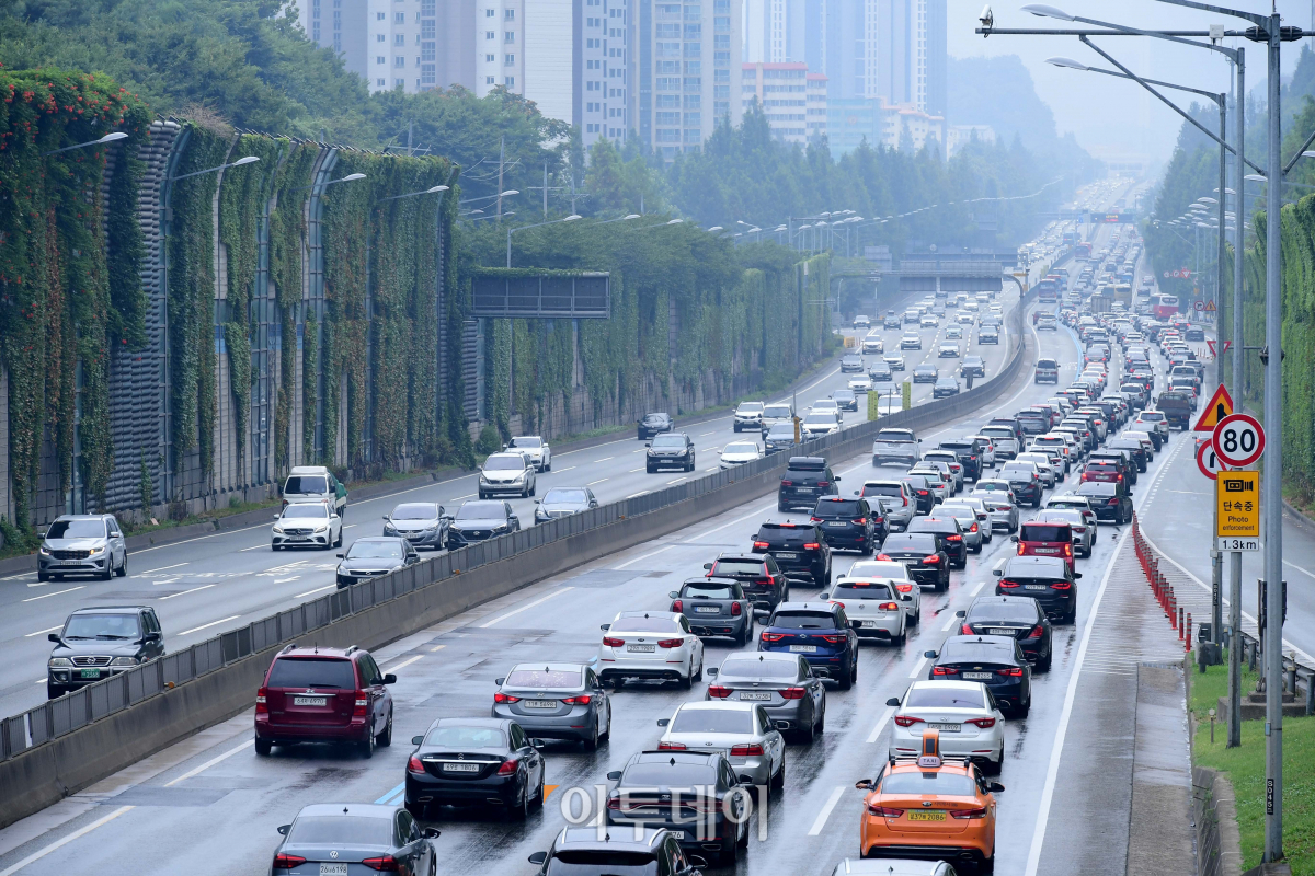 본격적인 여름휴가철을 맞은 1일 서울 서초구 경부고속도로 잠원IC 부근 하행선(오른쪽)이 도심을 빠져나가려는 차량으로 정체를 빚고 있다. 한국도로공사는 이날 전국에서 차량 456만대가 고속도로를 이용할 것으로 내다봤다. 지난주 대비 45만대가 늘어난 수준이다.