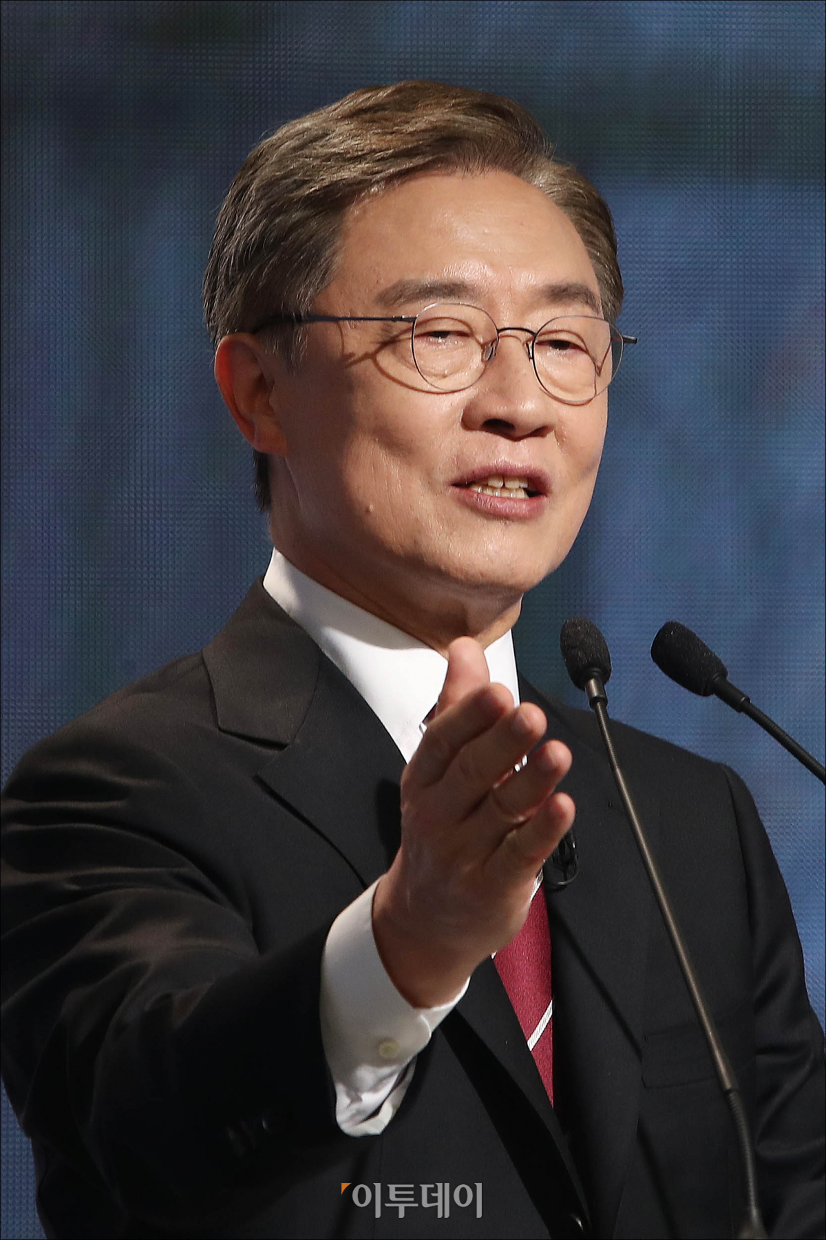 국민의힘 대선 예비후보인 최재형 전 감사원장이 4일 오후 경기도 파주 미라클스튜디오에서 대선 출마선언을 하고 있다. 국회사진취재단