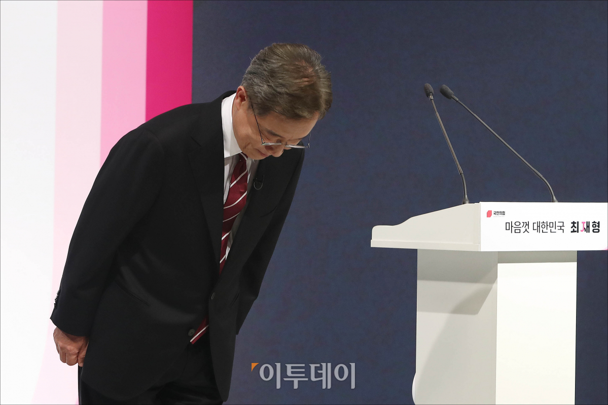 [포토] 고개숙여 인사하는 최재형 예비후보