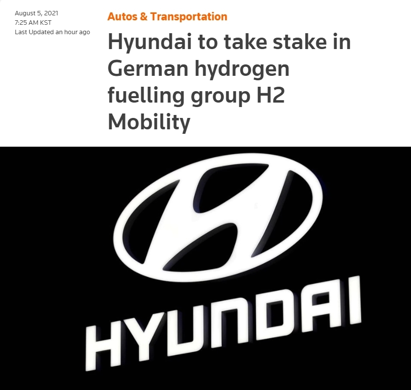 5일 로이터통신은 "현대차가 독일의 수소연료 충전 네트워크인 'H2 모빌리티'에 투자할 계획"이라고 보도했다.