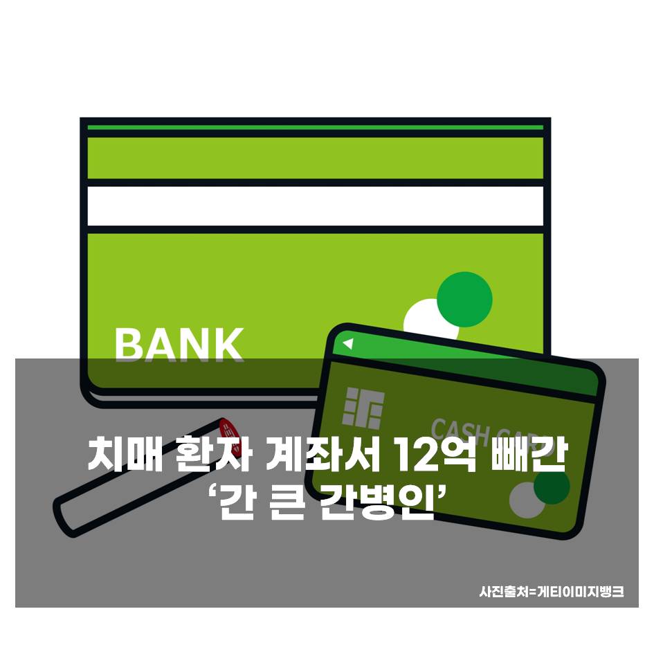 경기 수원남부경찰서는 돌보던 치매 환자의 계좌에서 12억 원을 빼간 혐의(특정경제범죄가중처벌법상 횡령)로 중국 국적 간병인 60대 여성 A 씨와 공범인 40대 남성을 구속해 검찰에 넘겼다고 4일 밝혔습니다.