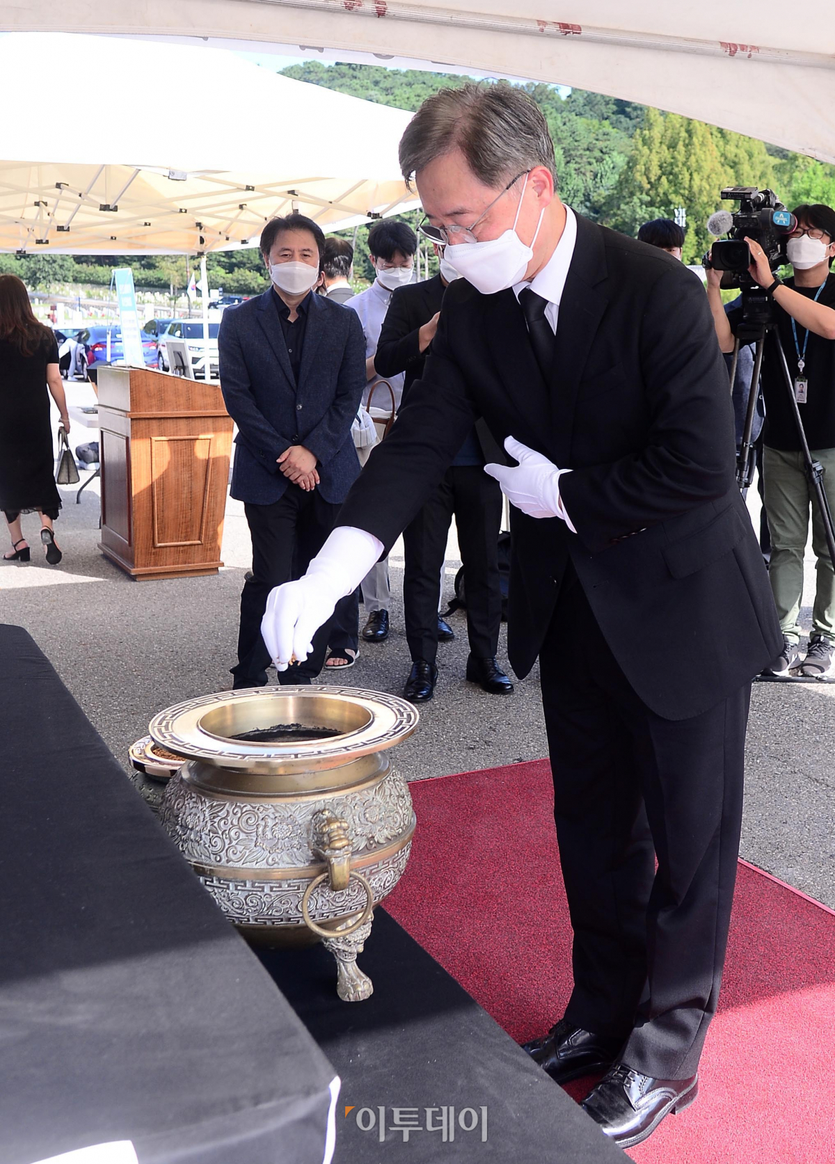 국민의힘에 입당후 대선출마를 선언한 최재형 전 감사원장이 5일 오전 서울 동작구 국립서울현충원을 찾아 임시현충탑 참배소에서 참배하고 있다. 국회사진취재단