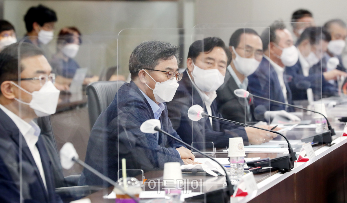 5일 여의도 중소기업중앙회에서 김동연 전 부총리가 중소기업인들과 대화의 자리를 가진 가운데 김 부총리가 모두발언을 하고 있다.