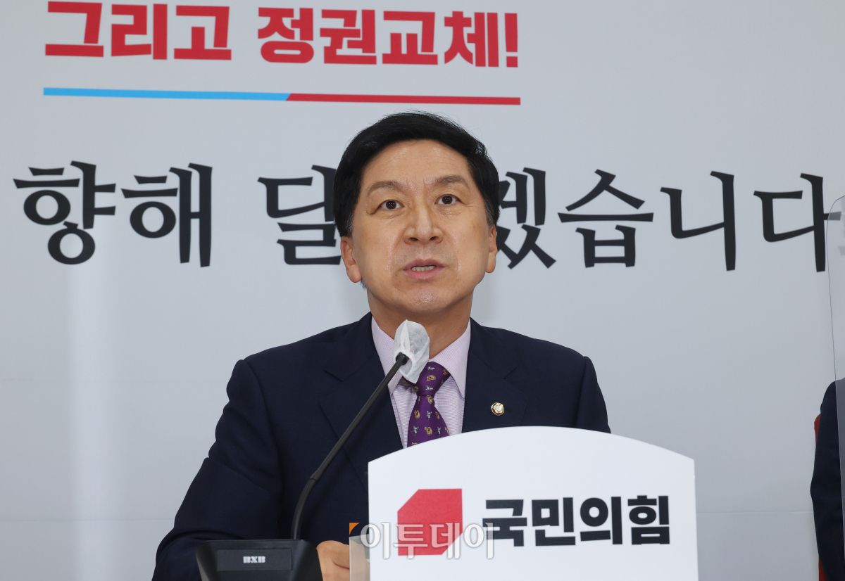 취임 100일을 맞은 김기현 국민의힘 원내대표가 5일 오전 서울 여의도 국회에서 기자간담회을 열어 그간의 소회와 내년 대선 각오를 밝히고 있다.