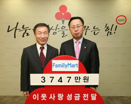 보광훼미리마트는 지난 20일 서울 중구 정동에 위치한 사회복지 공동모금회 전달식장에서 지난해 훼미리마트 삼각김밥 판매수익금 중 일부인 3747만원을 사회복지공동모금회(사랑의 열매)에 전달했다.