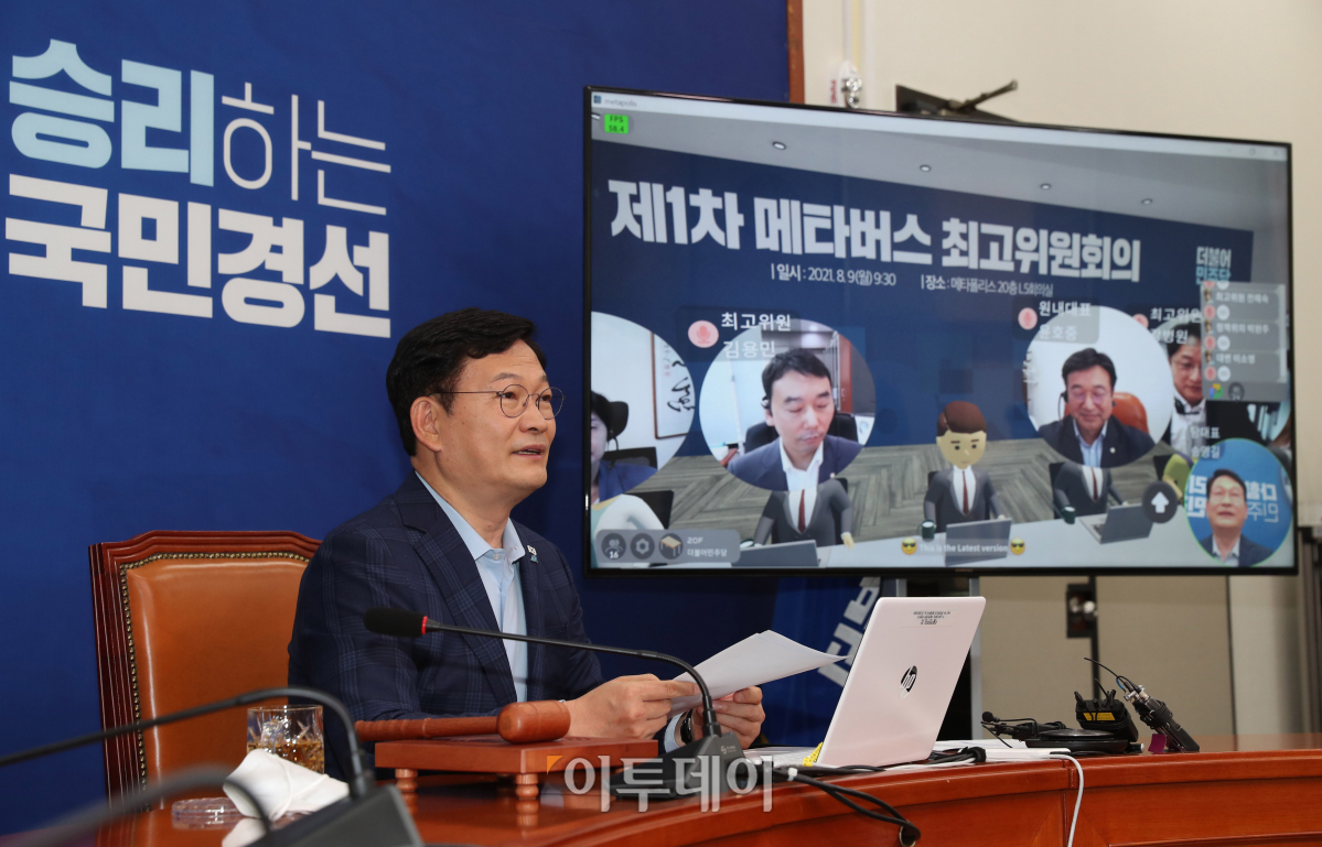 송영길 더불어민주당 대표가 9일 오전 서울 여의도 국회에서 열린 제1차 메타버스 최고위원회의에서 모두발언을 하고 있다.