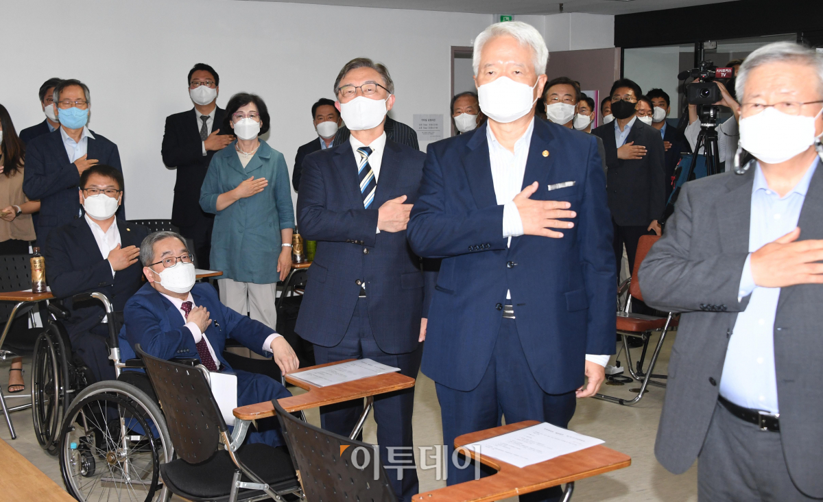[포토] 선거대책회의, 국민의례하는 최재형 전 감사원장