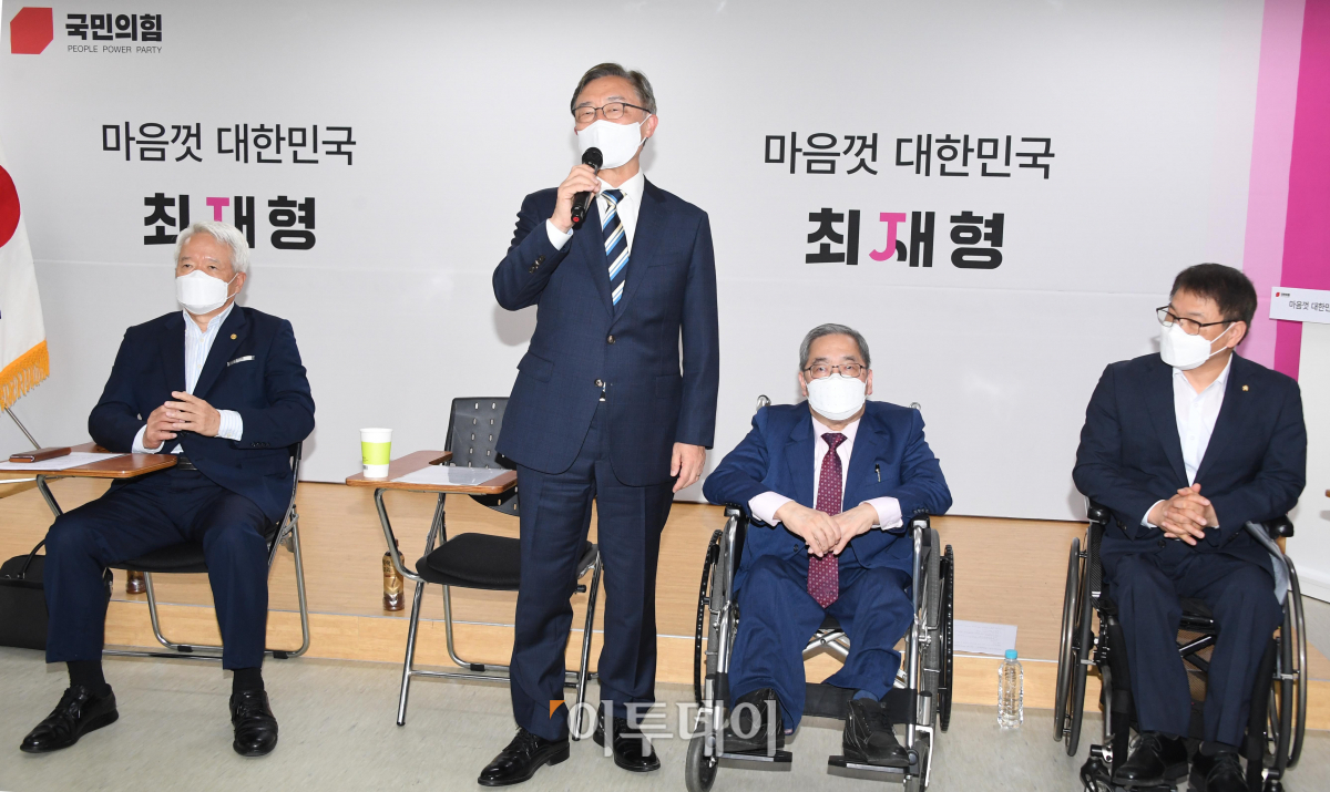최재형 국민의힘 대선 예비후보가 9일 여의도 캠프에서 선거대책회의를 하며 발언하고 있다.