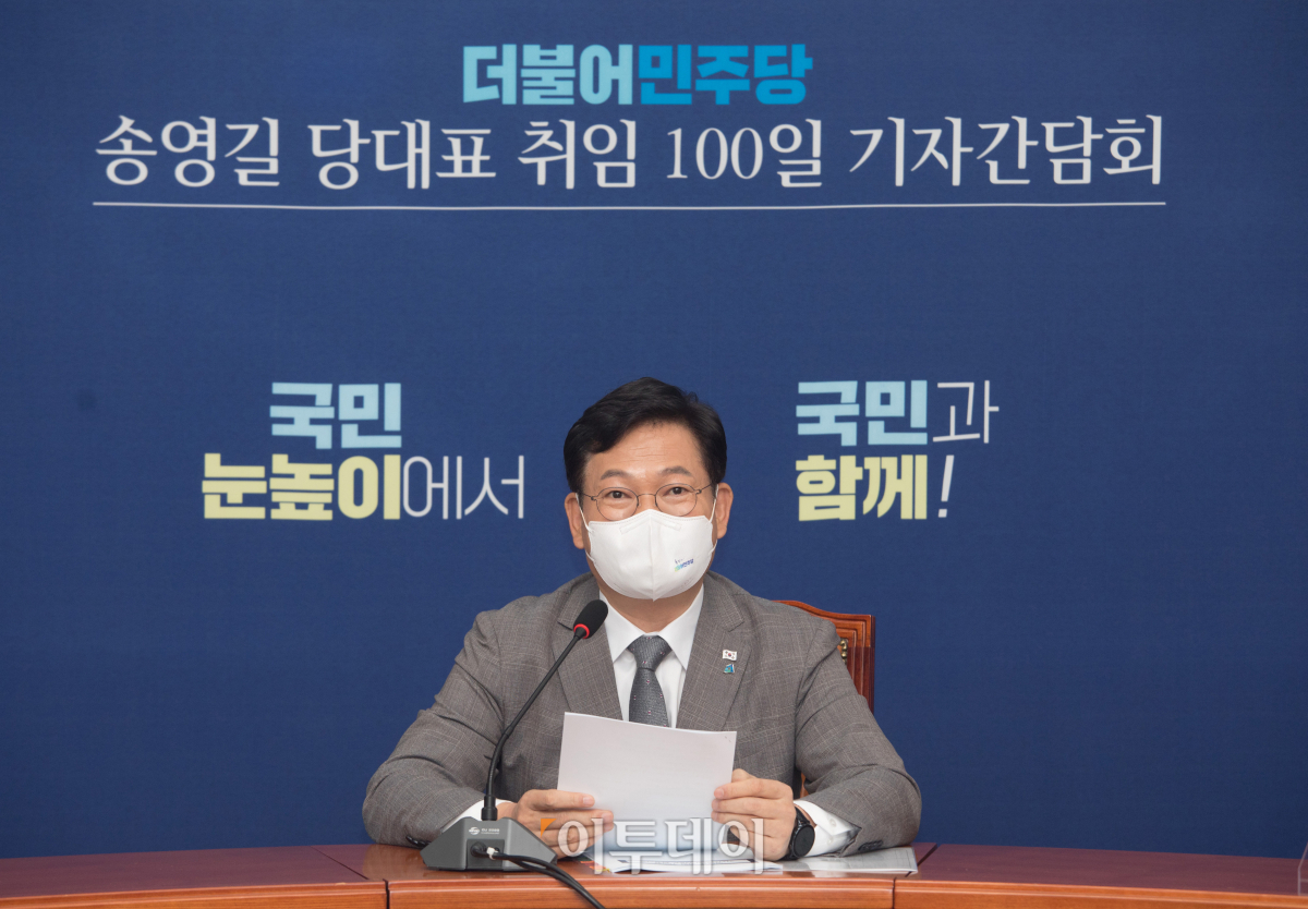 [포토] 송영길 민주당 대표, 취임 100일 기자간담회