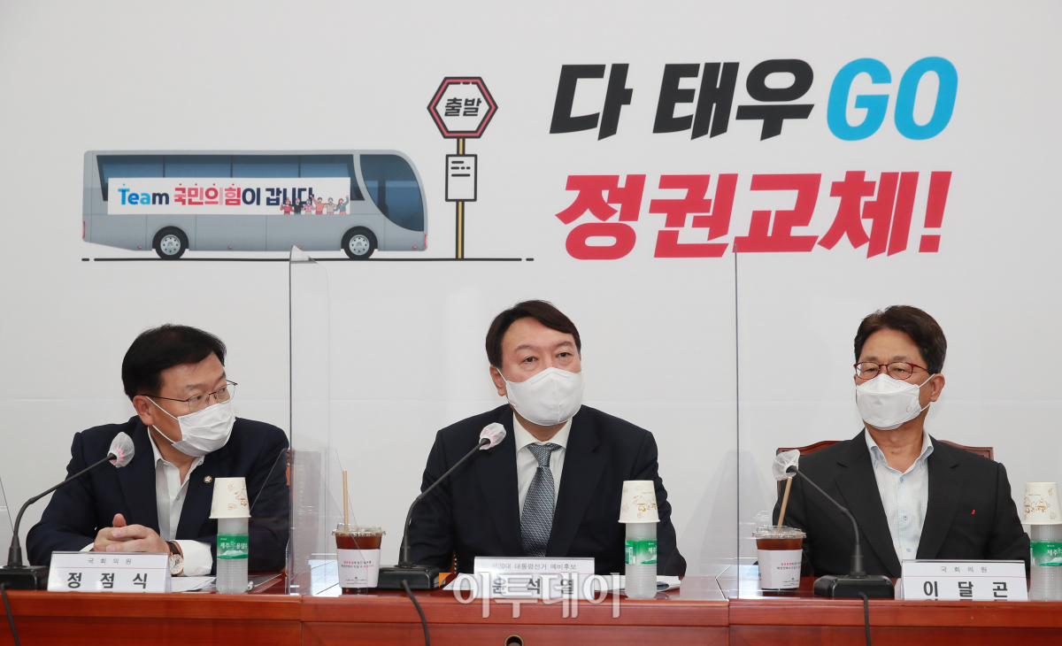 국민의힘 윤석열 대선 예비후보가 11일 오전 서울 여의도 국회에서 열린 ‘더 큰 국민의힘 재선의원 간담회’에서 모두발언을 하고 있다.