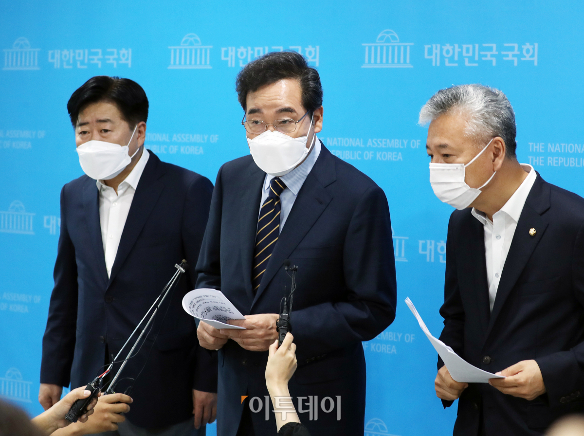 더불어민주당 대권주자인 이낙연 전 대표가 17일 국회 소통관에서 중산층 70%를 위한 경제성장 전략 및 실행계획, 제조업 발전전략을 발표한 뒤 기자들로부터 질문받고 있다.