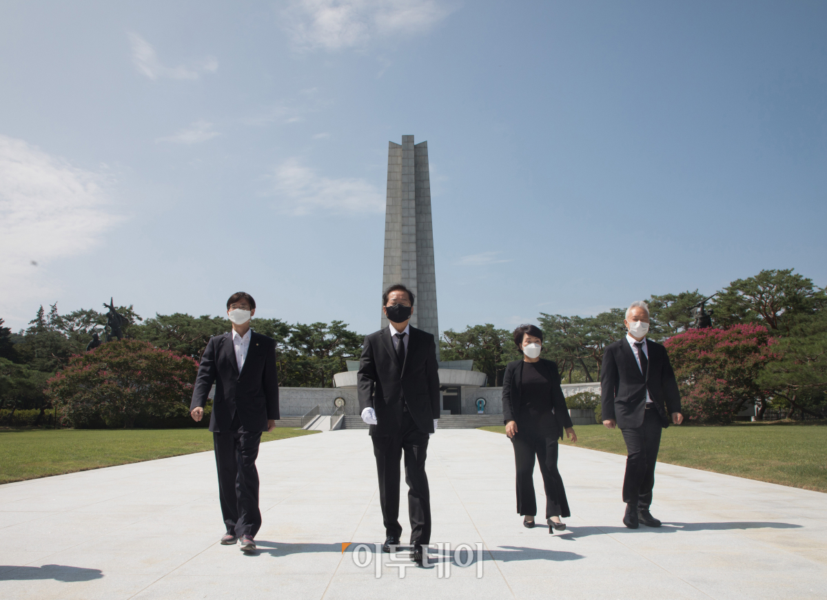 17일 오전 20대 대통령 출마선언을 한 국민의힘 홍준표 의원이 대선예비후보의 첫행보로 서울 동작구 국립현충원의 현충탑을 참배하고 돌아나오고 있다. 국회사진취재단