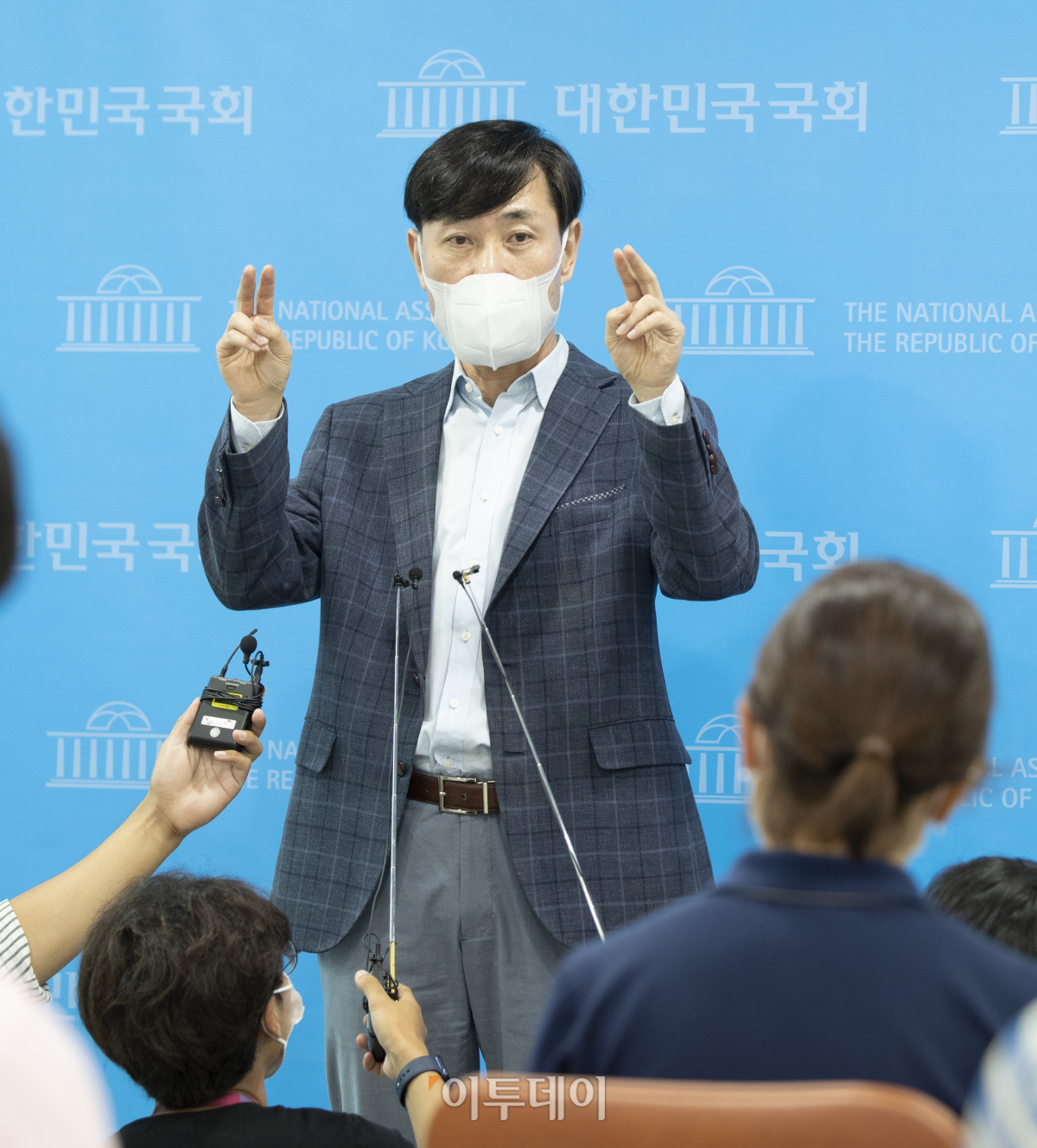 국민의힘 하태경 의원이 18일 오전 서울 여의도 국회 소통관에서 원희룡 후보 사퇴 촉구 기자회견을 마친 뒤 기자들 질문에 답하고 있다.