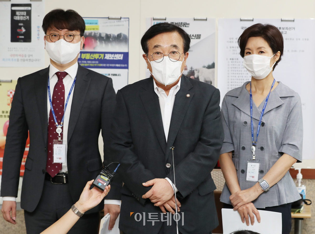 국민의힘 서병수 경선준비위원장이 20일 서울 여의도 국회에서 마지막 회의를 마친 뒤 "경선준비위원장 사퇴와 거론되는 선거관리위원장도 맡지 않겠다"고 밝히고 있다.