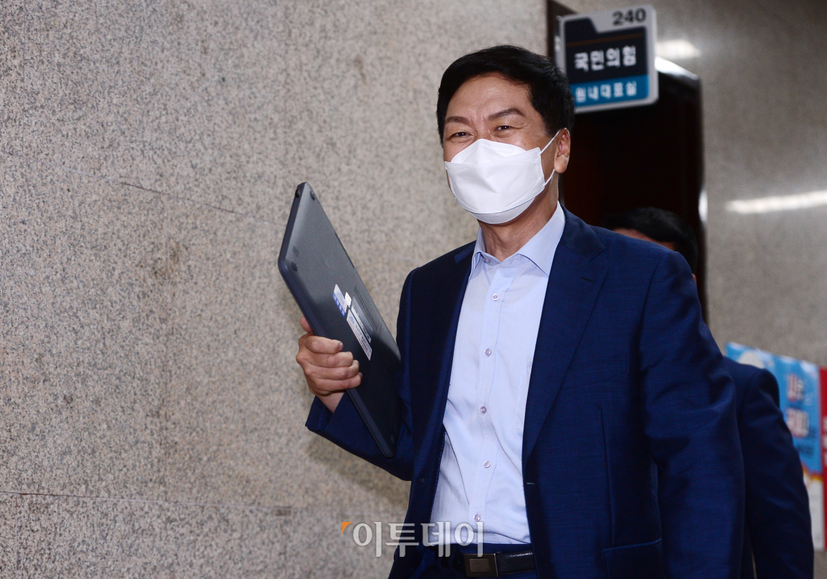 24일 오전 서울 여의도 국회에서 이준석 국민의힘 대표 주재로 '부동산 불법거래 의혹'과 관련한 긴급 최고위원회가 열린 가운데 김기현 원내대표가 회의실로 향하고 있다. 이날 비공개로 열린 긴급최고위원회에서 국민권익위원회가 통보한 소속 의원 12명의 명단의 공개 여부, 처분 수위 등이 결정될 것으로 예상된다.