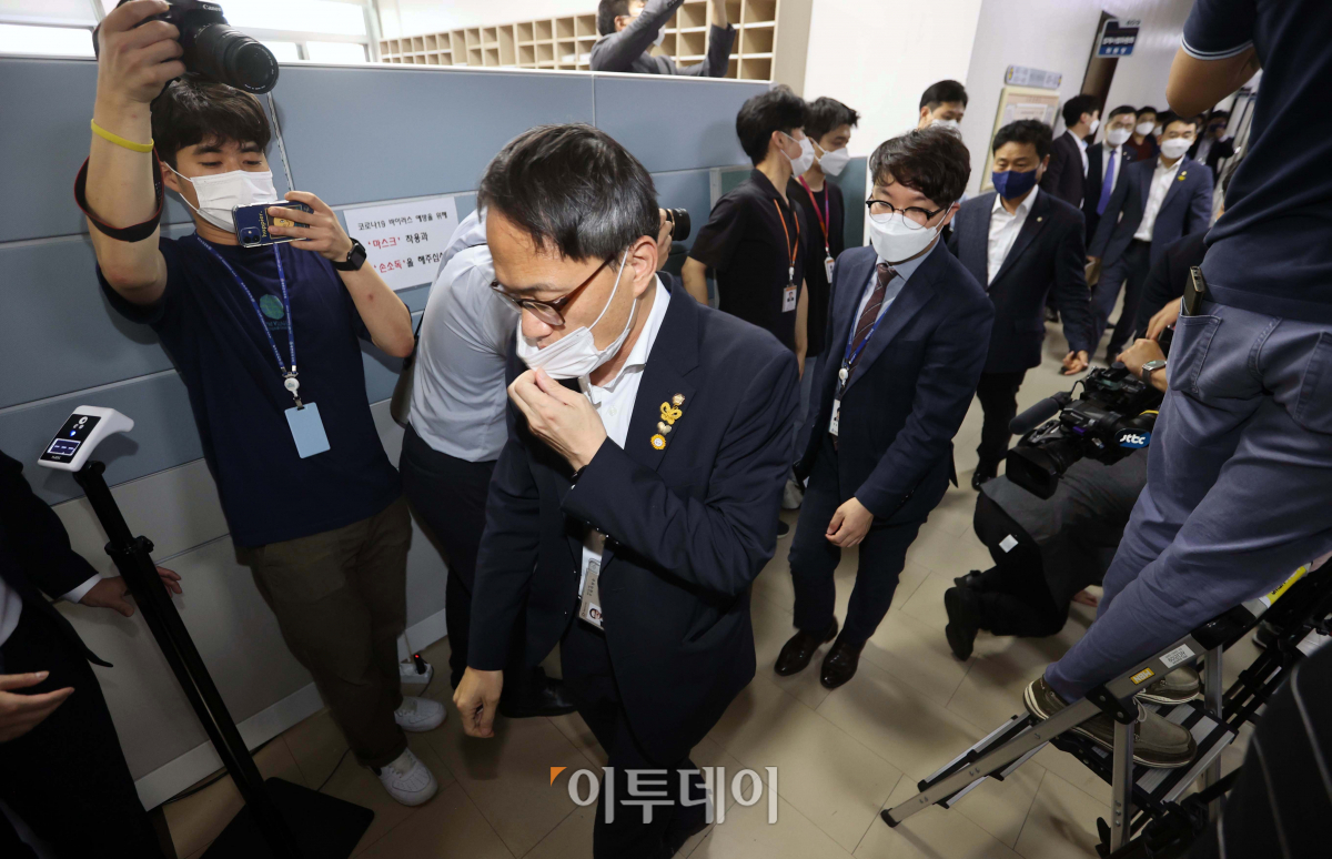 [포토] '언론중재법' 야당 반대속 법사위 들어서는 여당