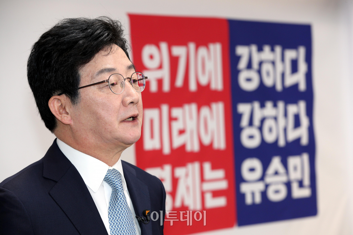 국민의힘 대선주자인 유승민 전 의원이 26일 오전 서울 여의도 캠프 사무실에서 대선 출마 선언을 하고 있다.