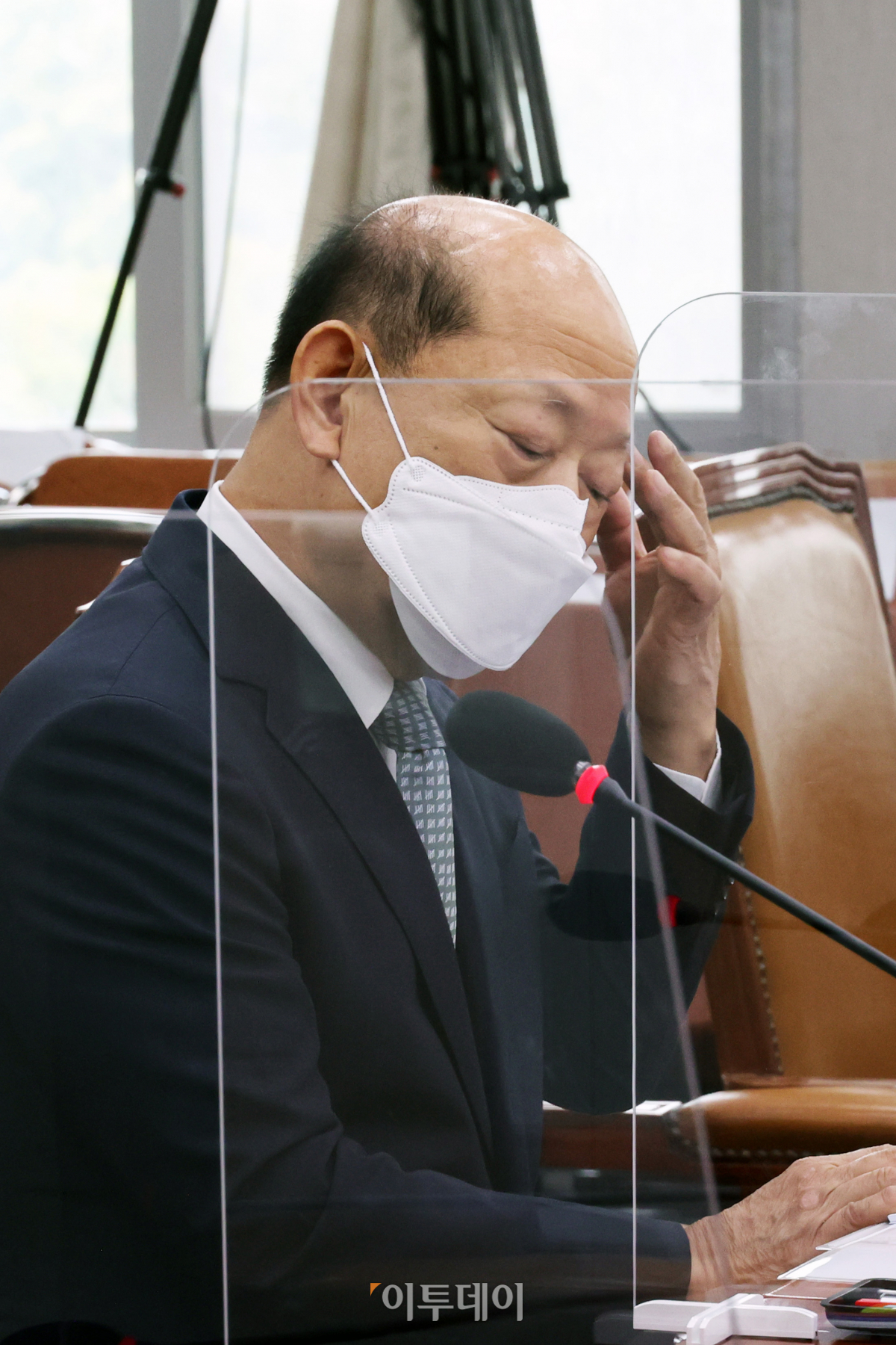 국가인권위원회 위원장후보자 인사청문회가 30일 서울 여의도 국회에서 열려 송두환 후보자가 무언가를 생각하고 있다.