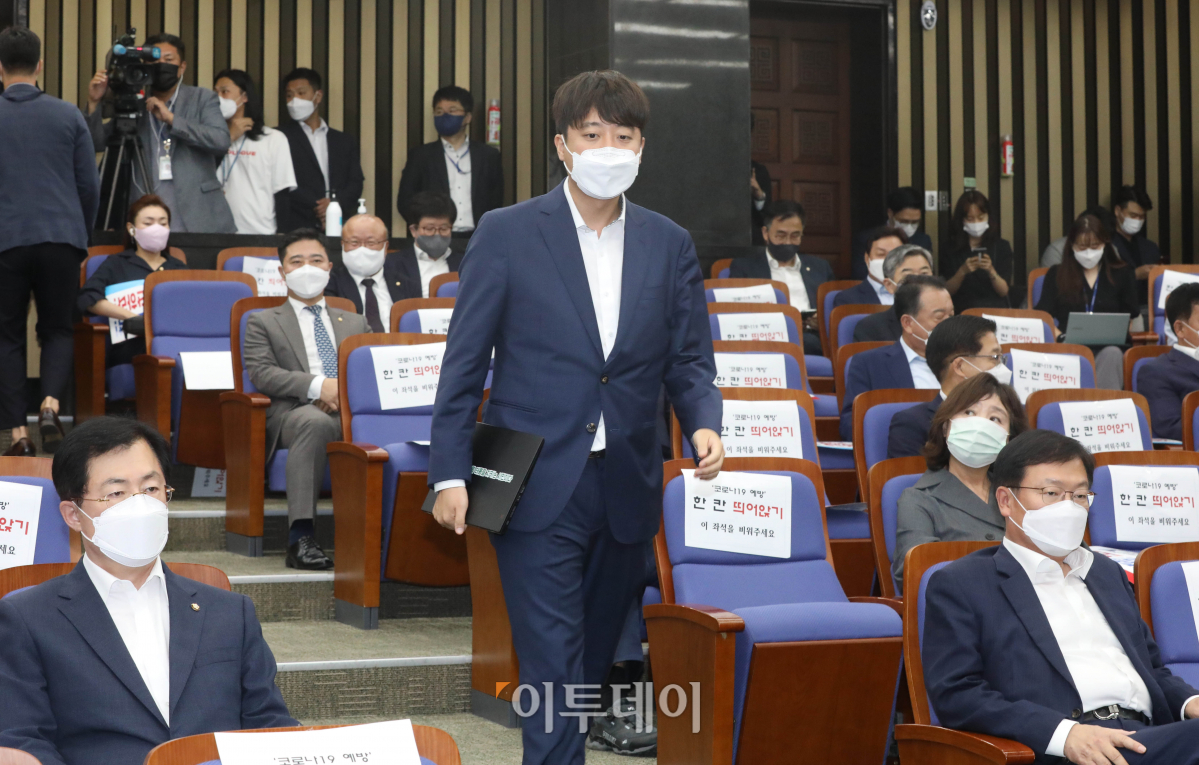 30일 오후 서울 여의도 국회에서 열린 국민의힘 현안관련긴급보고에 이준석 당대표가 참석하고 있다.