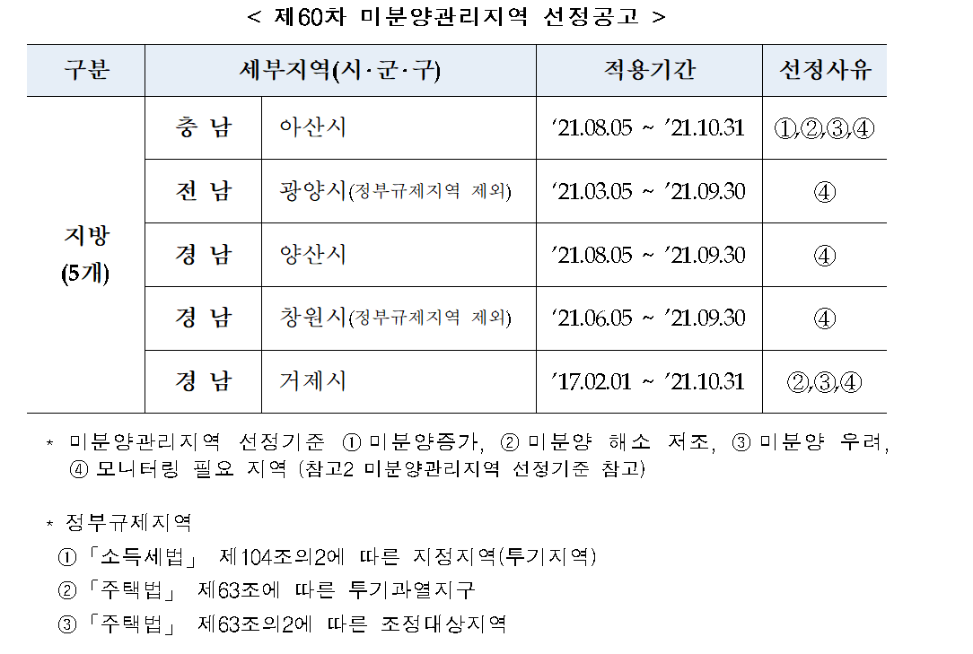 이들 7개 지역에 있는 미분양 주택은 3188가구다. 전국 미분양 주택(1만5198가구) 가운데 21.0%가 이들 지역에 있다.