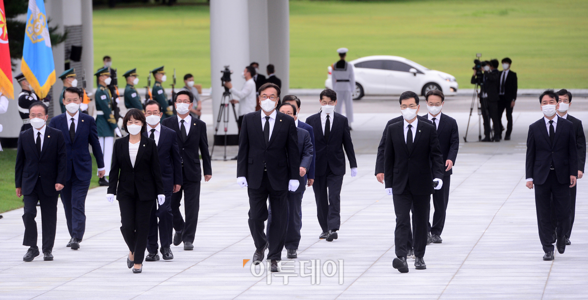 정진석 신임 국회부의장을 비롯한 상임위원장 및 상설특별위원장이 1일 오전 서울 동작구 국립서울현충원에서 참배를 하기 위해 현충탑으로 향하고 있다. 국회사진취재단
