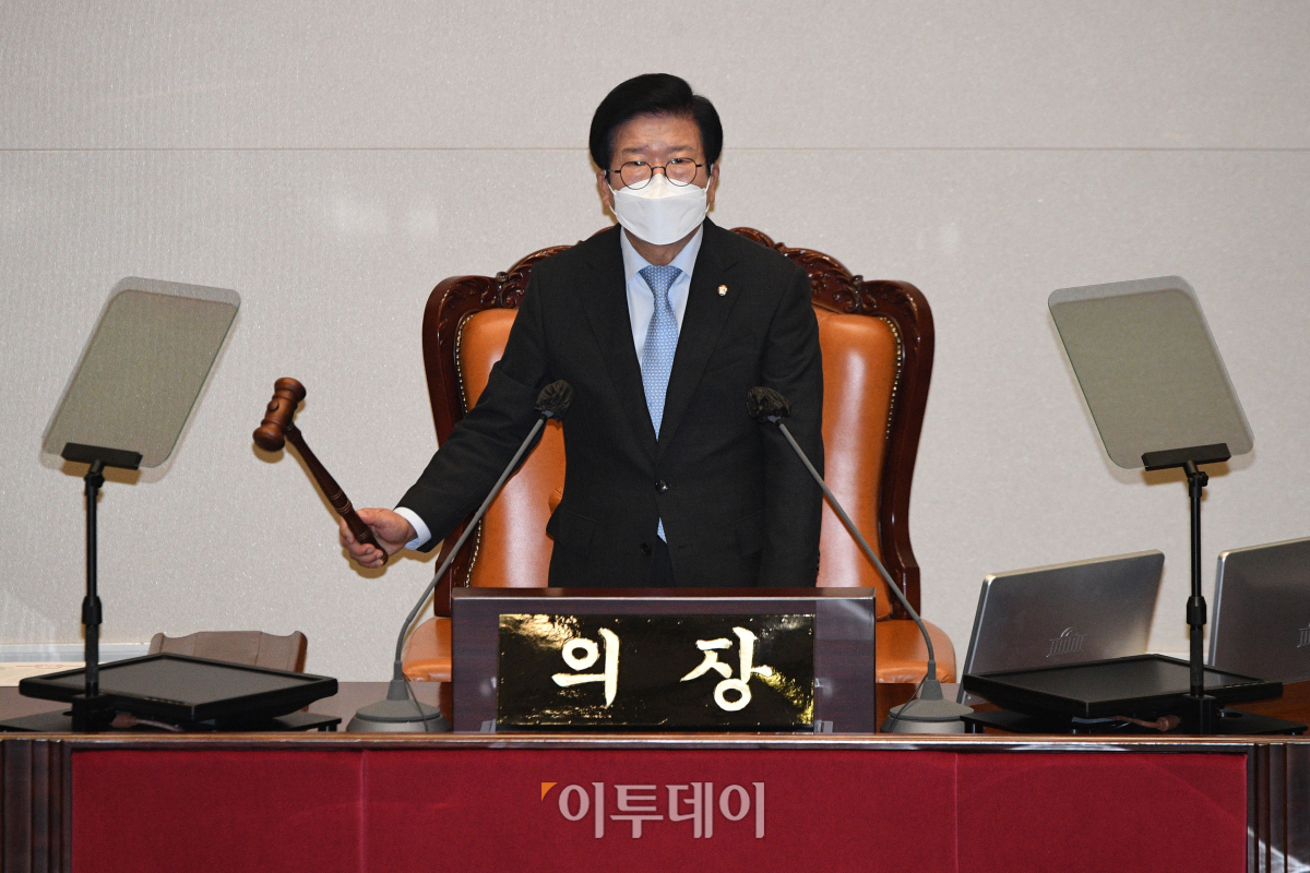 박병석 국회의장이 1일 오후 서울 여의도 국회에서 개회식 직후 열린 제391회 정기국회 제1차 본회의를 주재하고 있다.