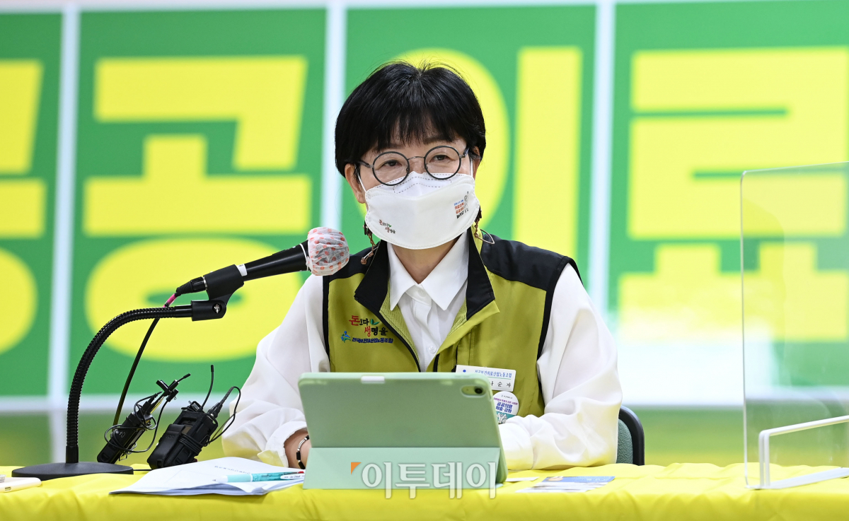 나순자 보건의료노조 위원장이 1일 오후 서울 영등포구 전국보건의료산업노동조합에서 발언을 하고 있다.