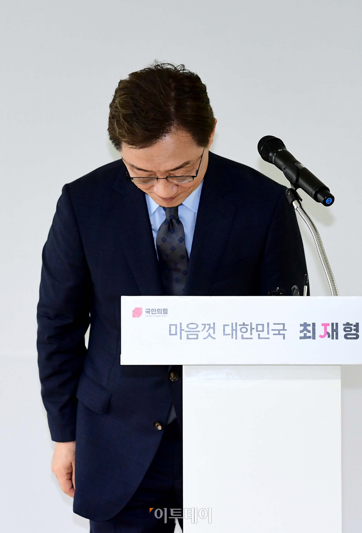 국민의힘 대선 예비후보인 최재형 전 감사원장이 2일 서울 여의도 열린캠프에서 외교안보분야 정책비전을 발표한 뒤 인사하고 있다.