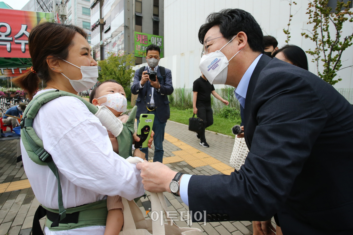 국민의힘 대선 경선 후보인 유승민 전 의원이 2일 GTX-D 연장 관련한 현장으로 경기도 김포시 도시철도 고촌역을 방문하며 지지자와 인사하고 있다. 국회사진취재단