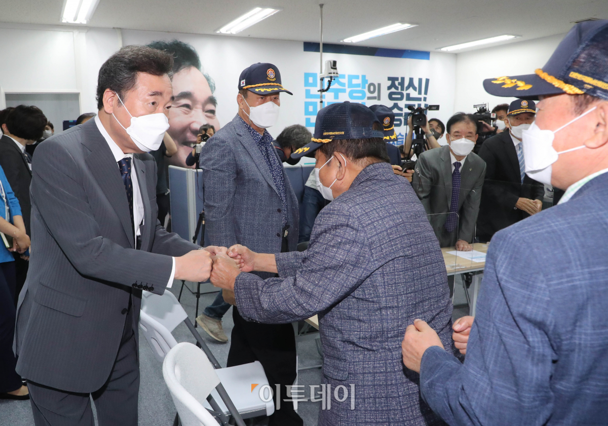 2일 오전 서울 여의도 대산빌딩에서 열린 대한민국월남전참전자회 간담회에서 더불어민주당 이낙연 경선후보가 참석자들과 인사를 하고 있다.